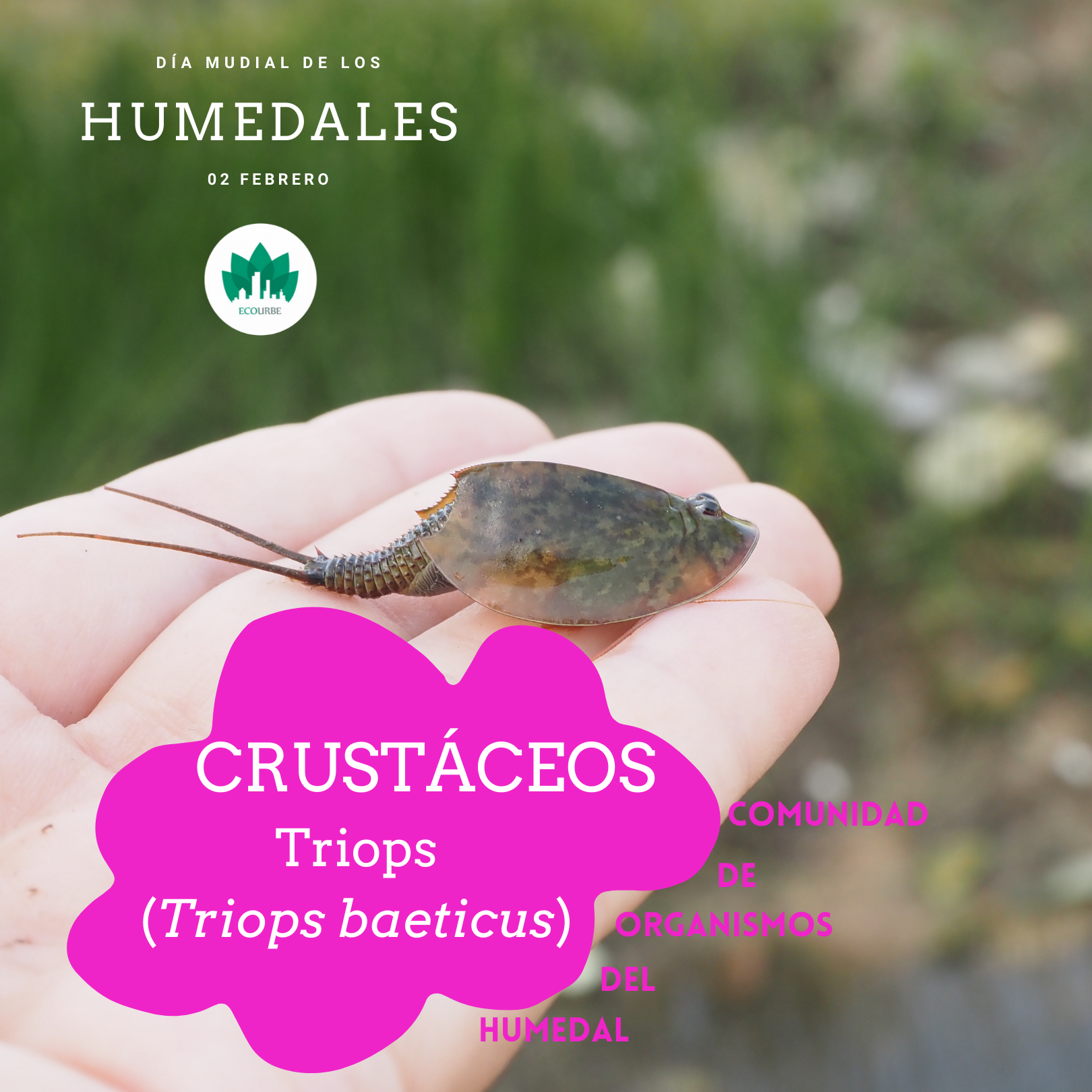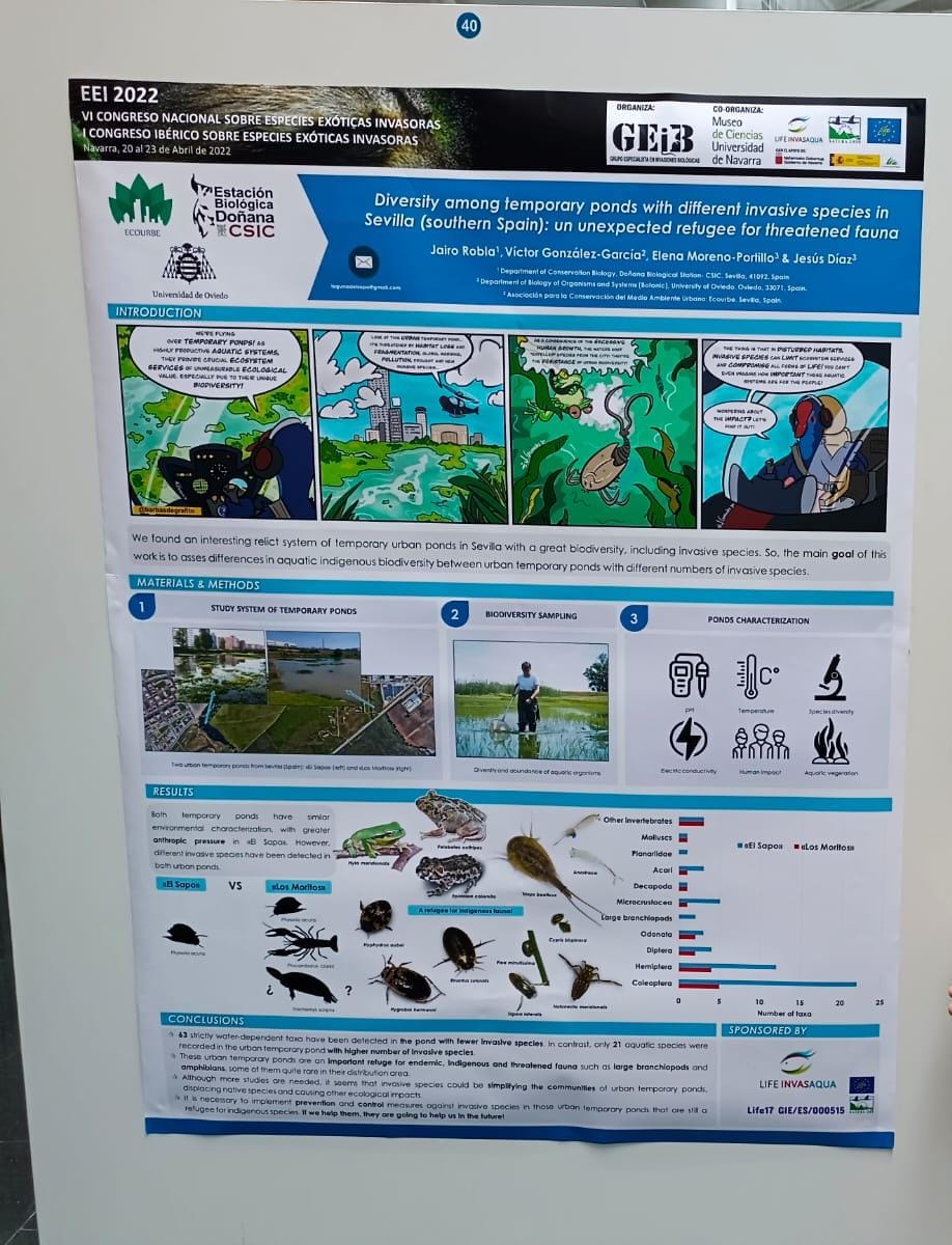 En 2019 la asociación Ecourbe comenzó una actividad de investigación e inventariado de un humedal periurbano al que bautizamos como lagunas de El Sapo. El Proyecto de las lagunas de El Sapo es una puesta en valor de los humedales urbanos, espacios históricamente maltratados y mal vistos como lugares insalubres o inservibles. Tras un estudio del terrero y un inventariado de especies hemos concluido que las Lagunas de El Sapo son un humedal temporal compuesto por distintas unidades de inundación a lo largo de un espacio periurbano entre parques que alberga la mayor comunidad de anfibios de la ciudad de Sevilla y artrópodos entre los que destacar el Triops, el animal vivo más antiguo del planeta. Por tanto este proyecto tiene como objetivo la investigación y conocimiento del espacio así como su divulgación y difusión entre la ciudadanía a través de publicaciones divulgativas y actividades en el terreno.
