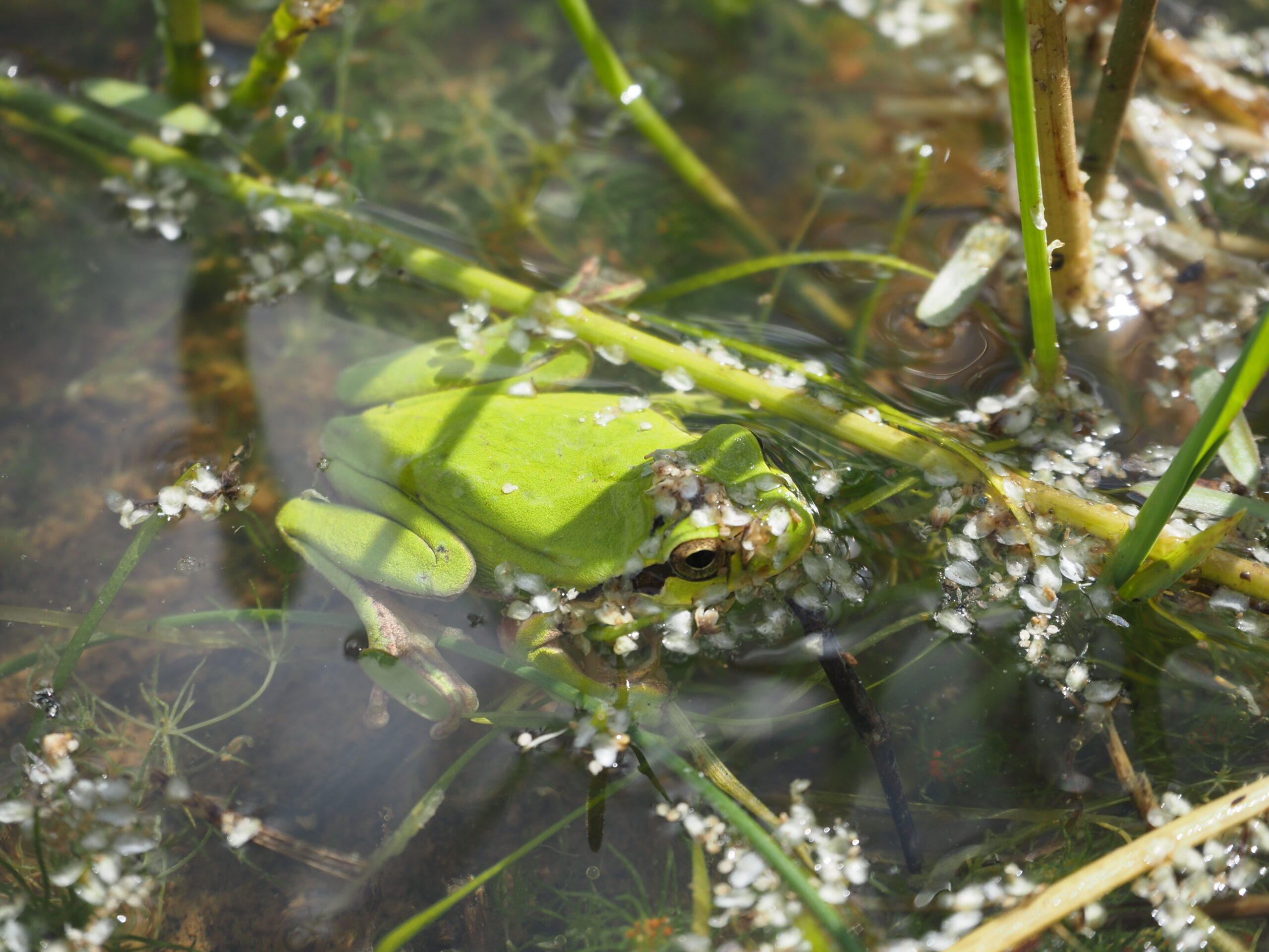 Destacar la presencia de hasta 6 especies de anfibios que hemos identificado se reproducen en estas lagunas, un grupo muy amenazado que encuentra aquí refugio, considerándose este espacio como un área importante para la conservación de los anfibios.
